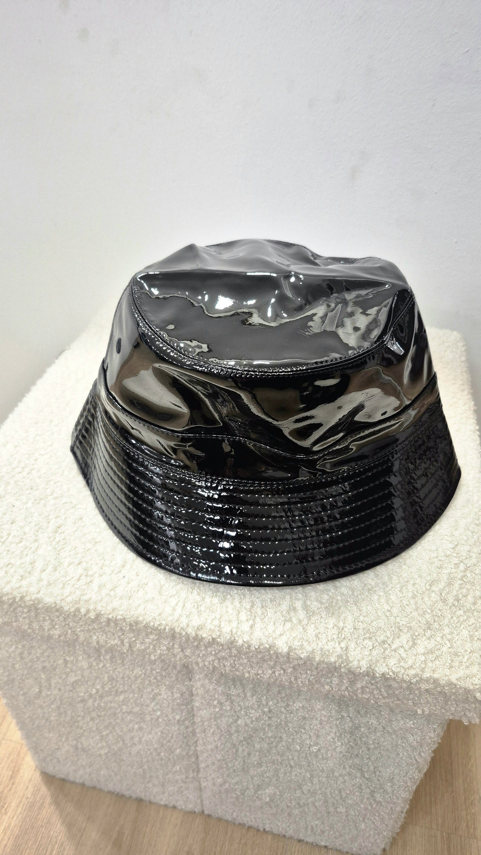 Gorro bucket para la lluvia, forrado por dentro y de charol por fuera.