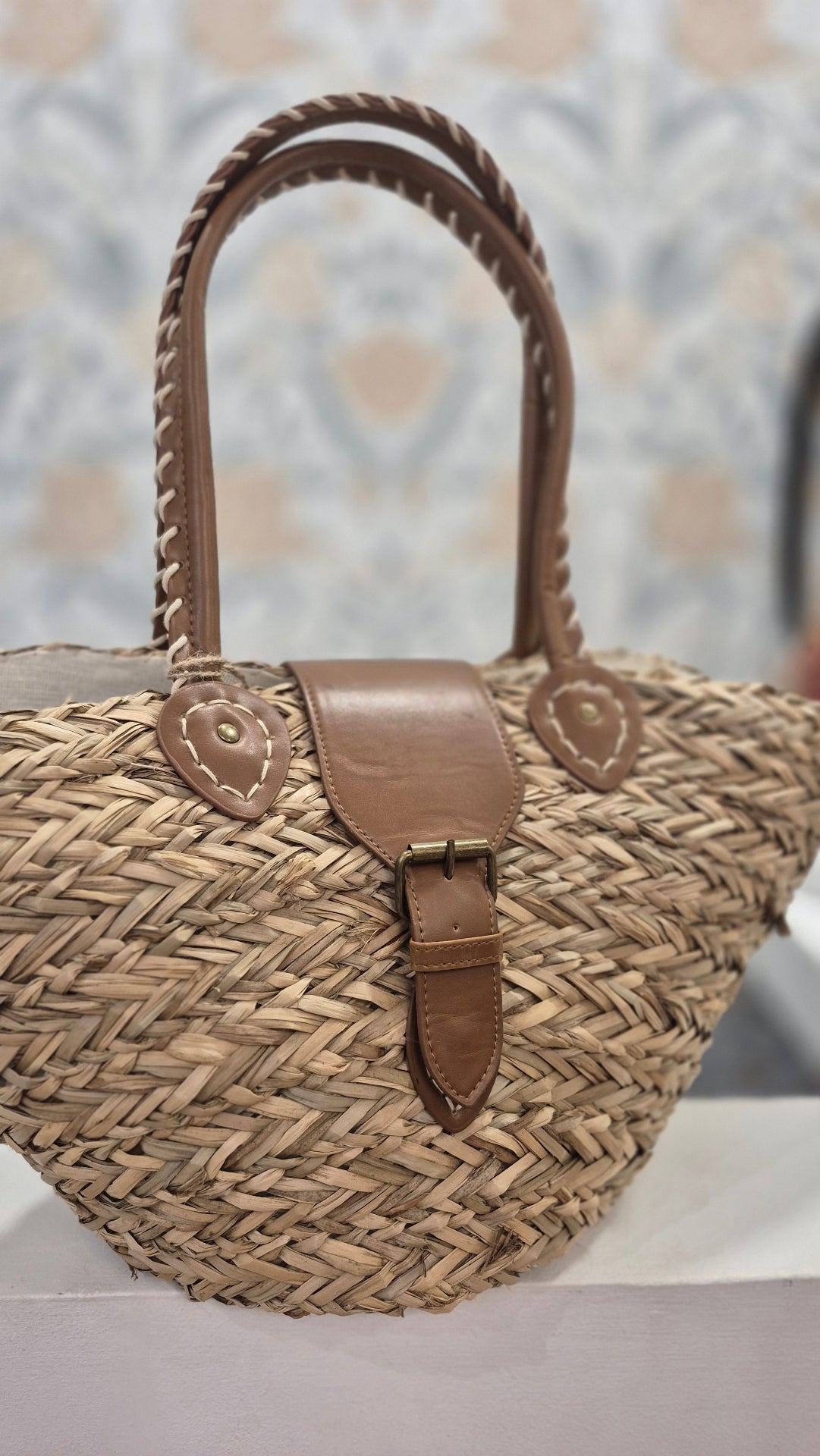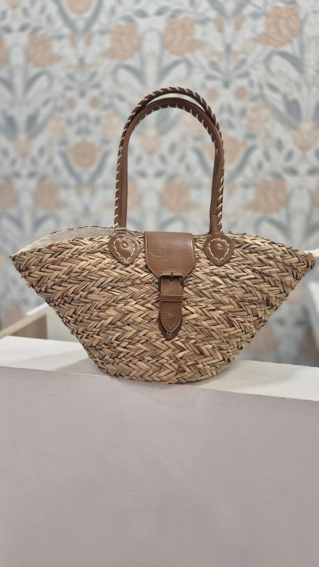 Capazo de rafia pequeño forrado por dentro y con bolsillo.