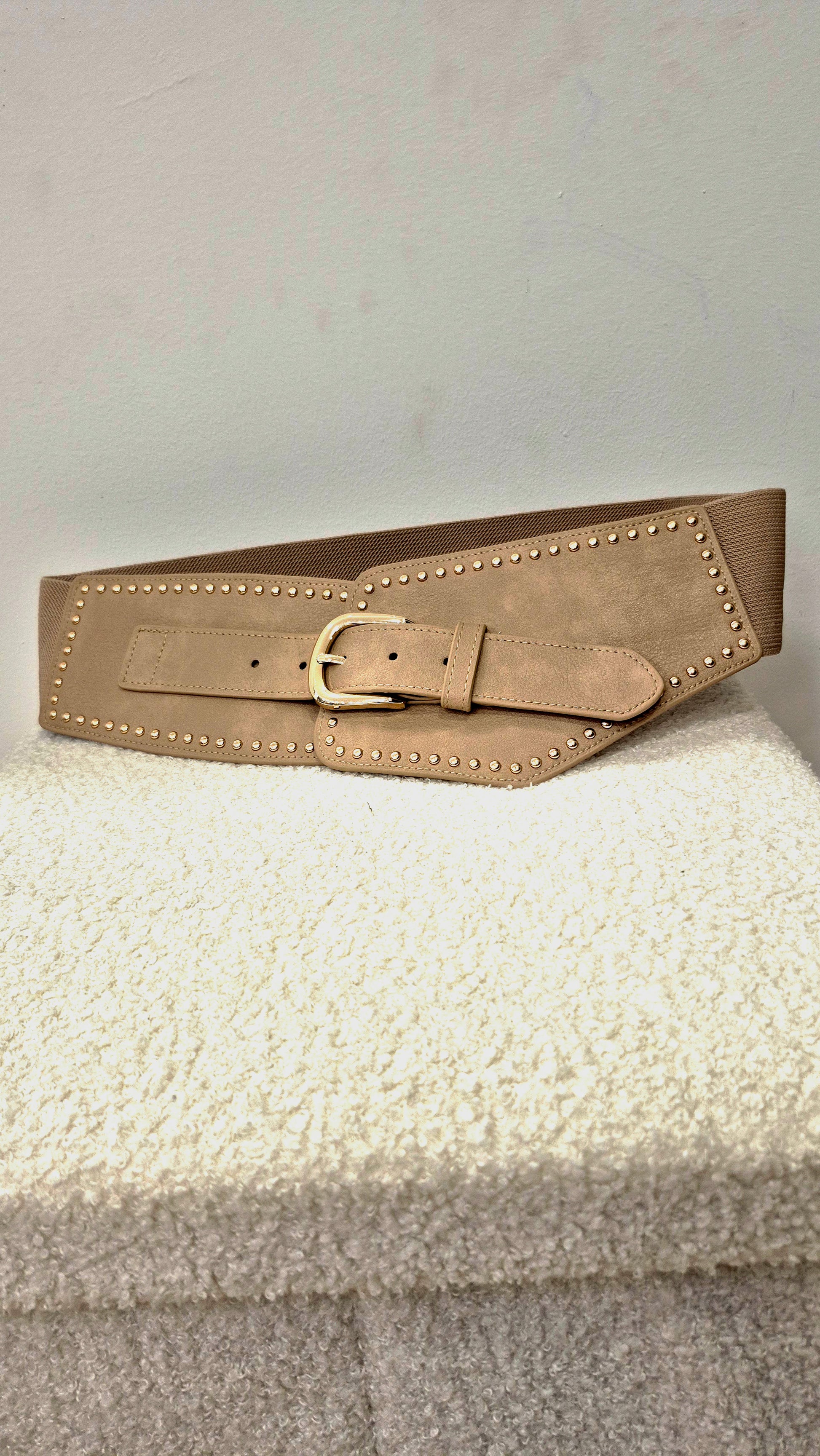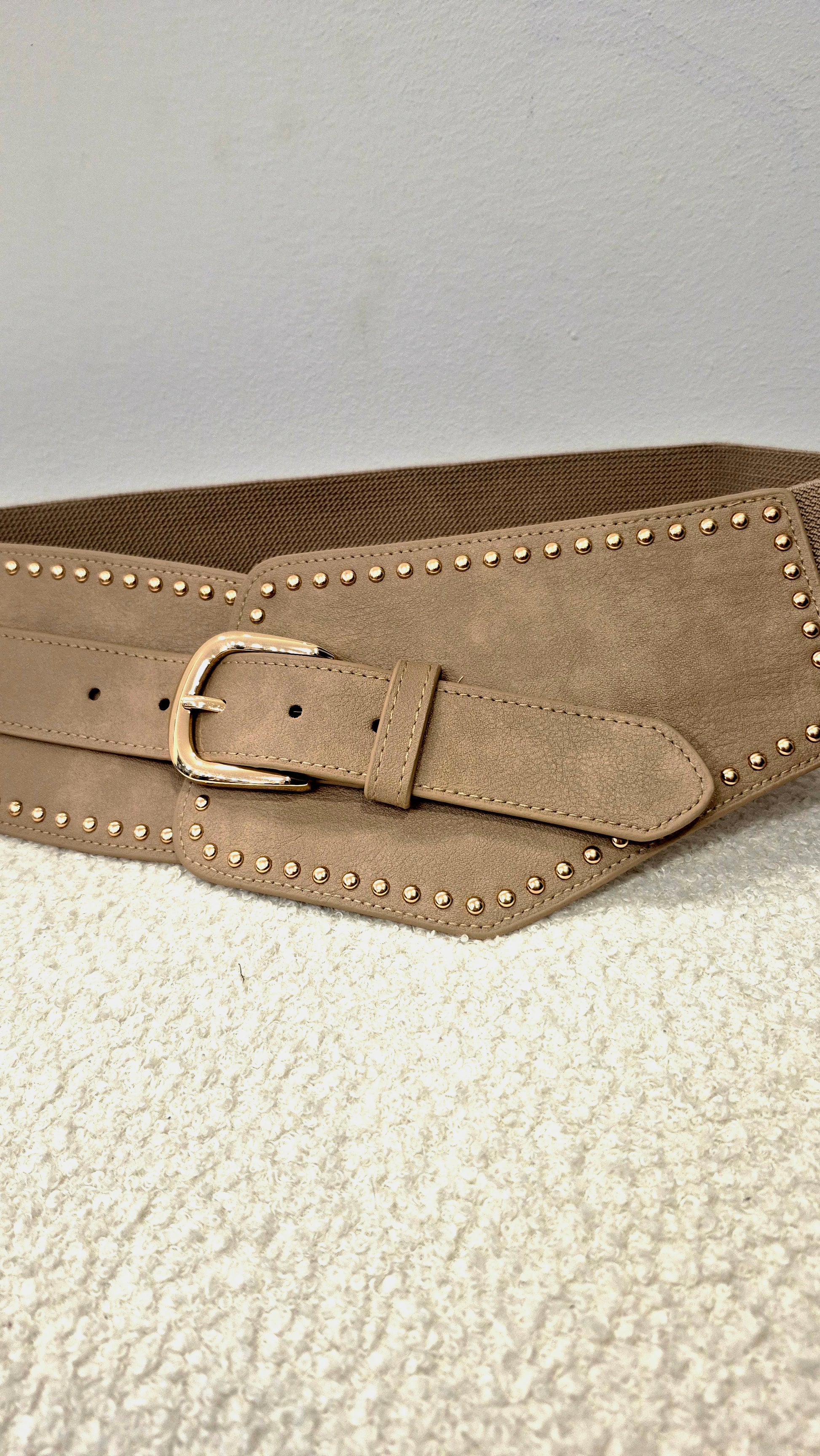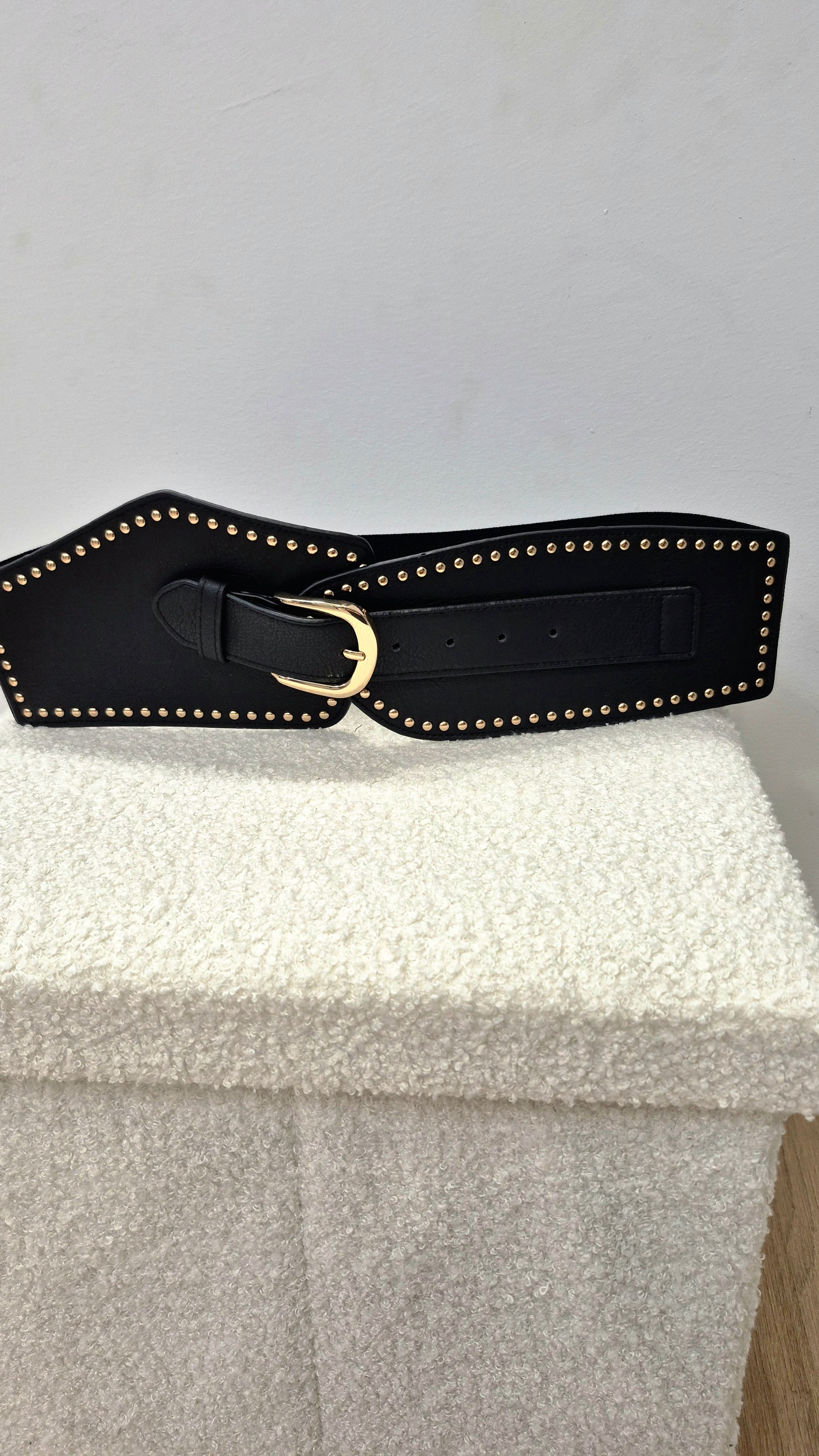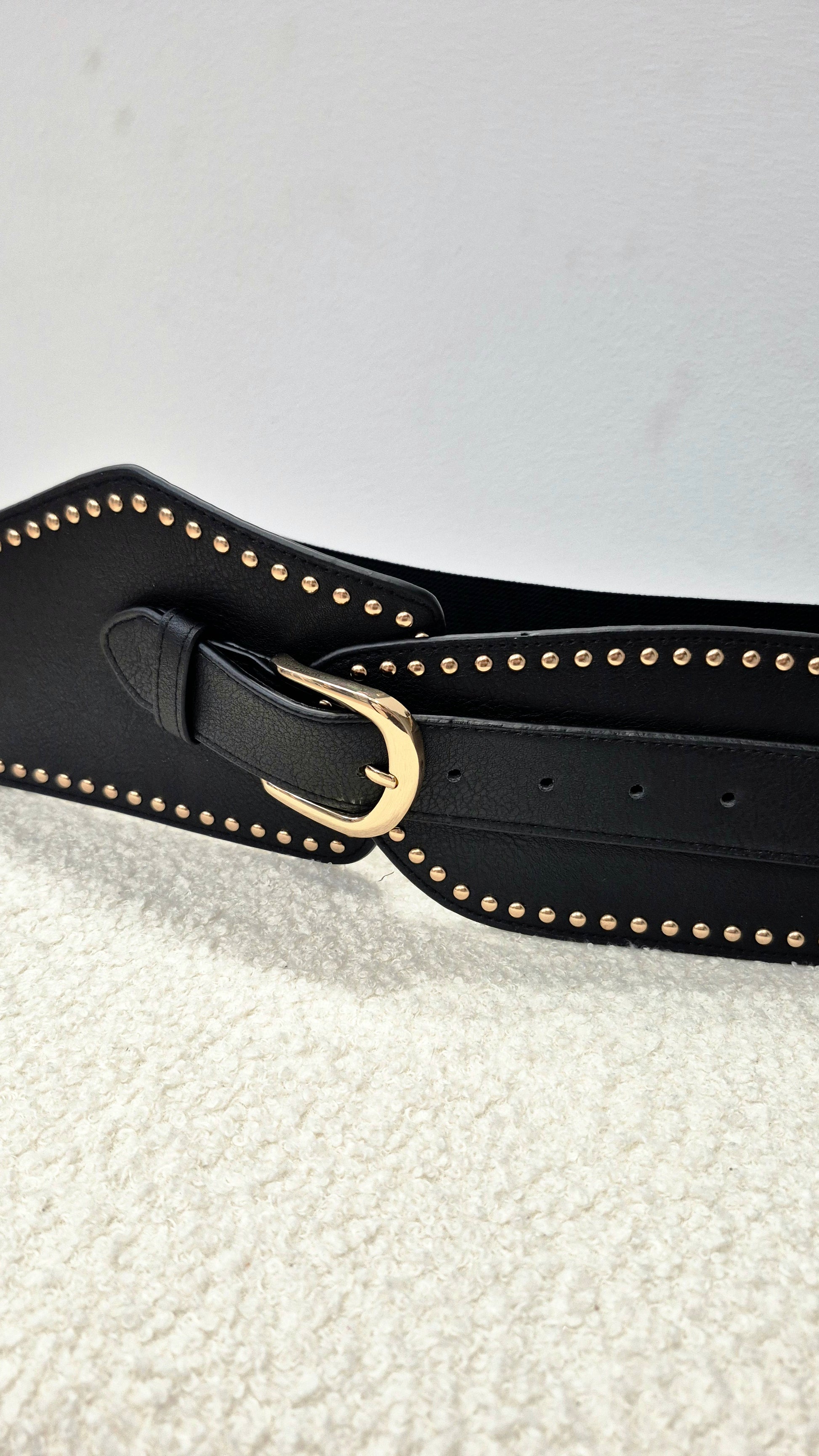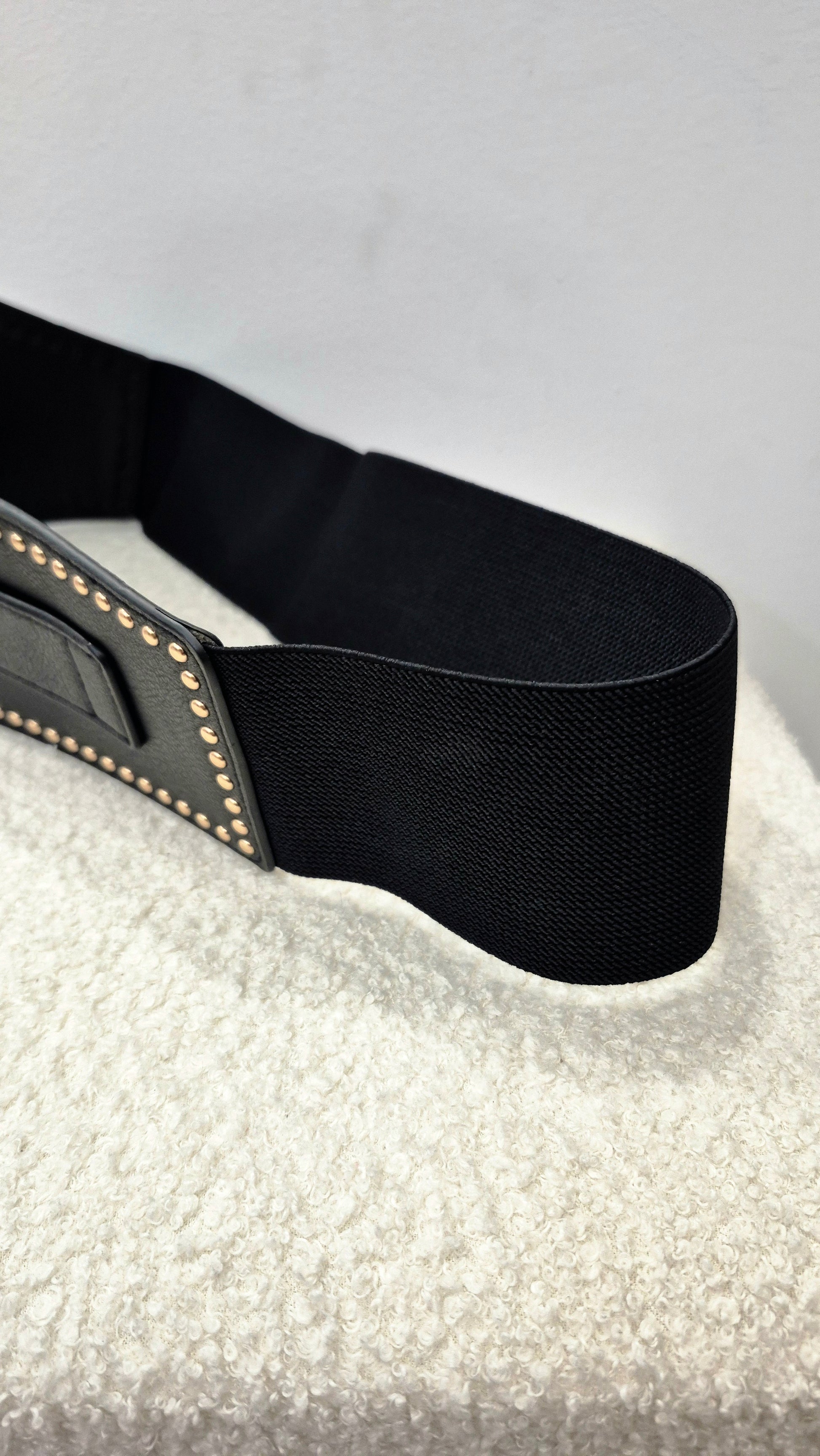 Cinturón ancho de mujer estilo fajín con hebilla delante y goma en la parte de detrás para que se ajuste mejor al cuerpo.