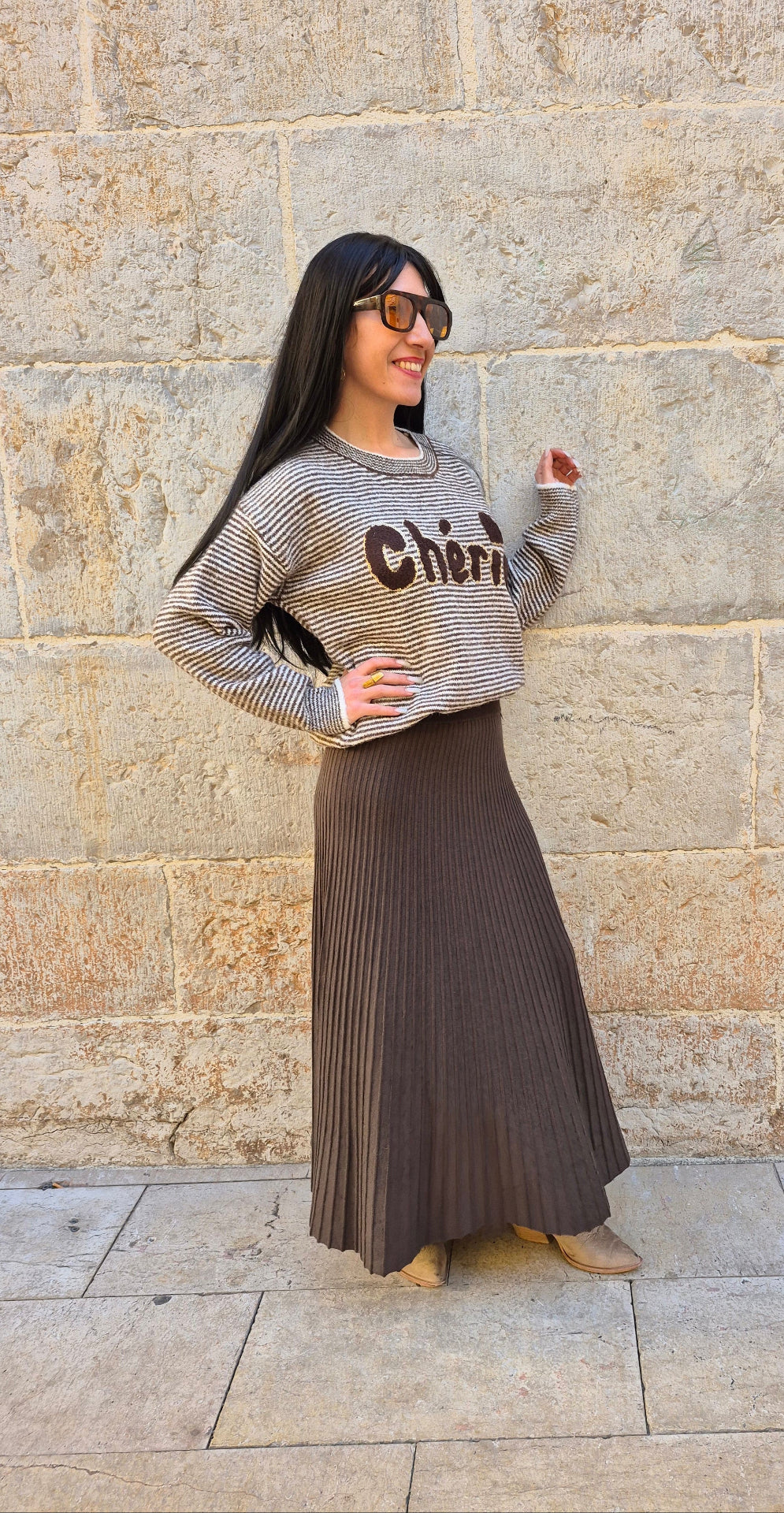 Falda larga de punto, de mujer. Plisada y con goma en la cintura. Muy en tendencia.