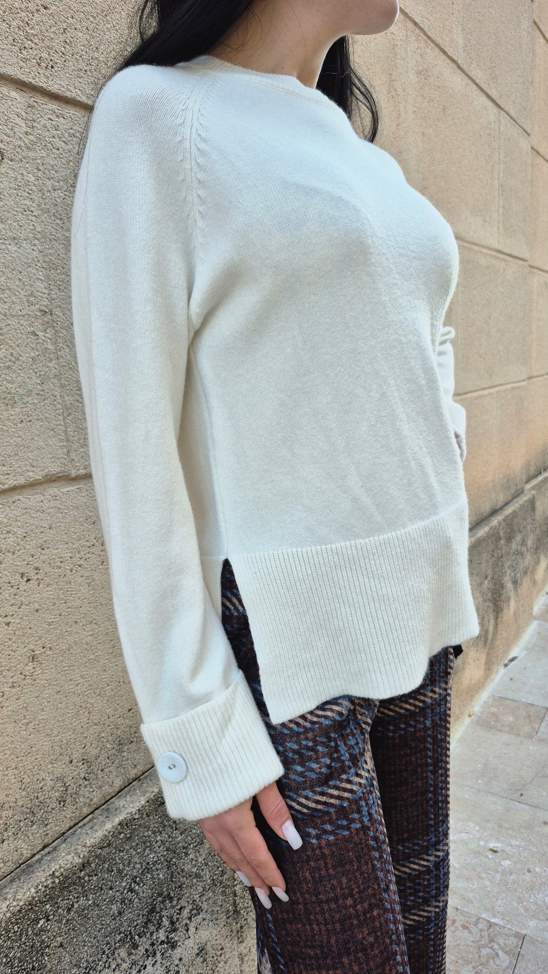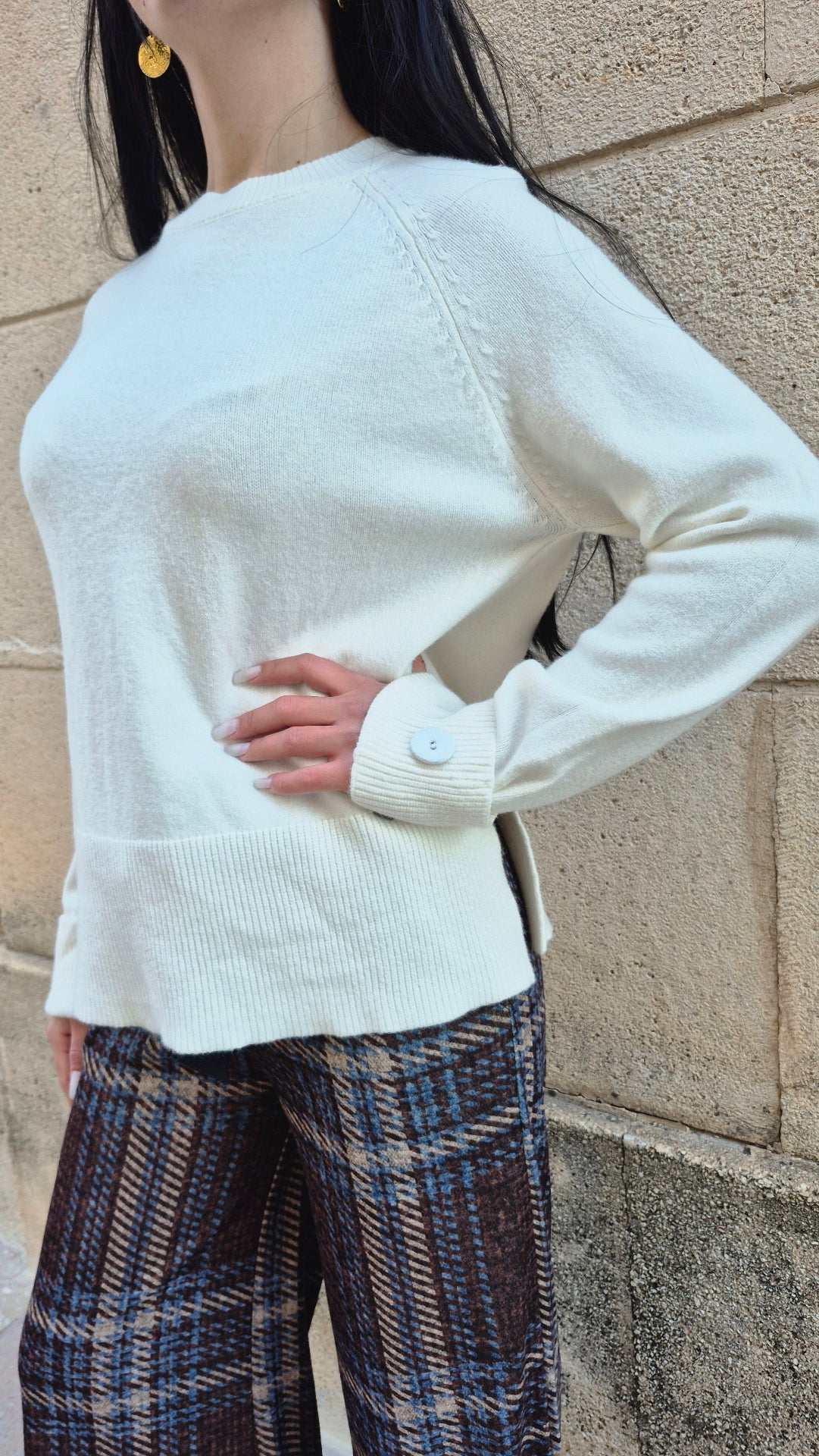 Jersey liso de mujer. Cuello redondo y aberturas en los laterales.