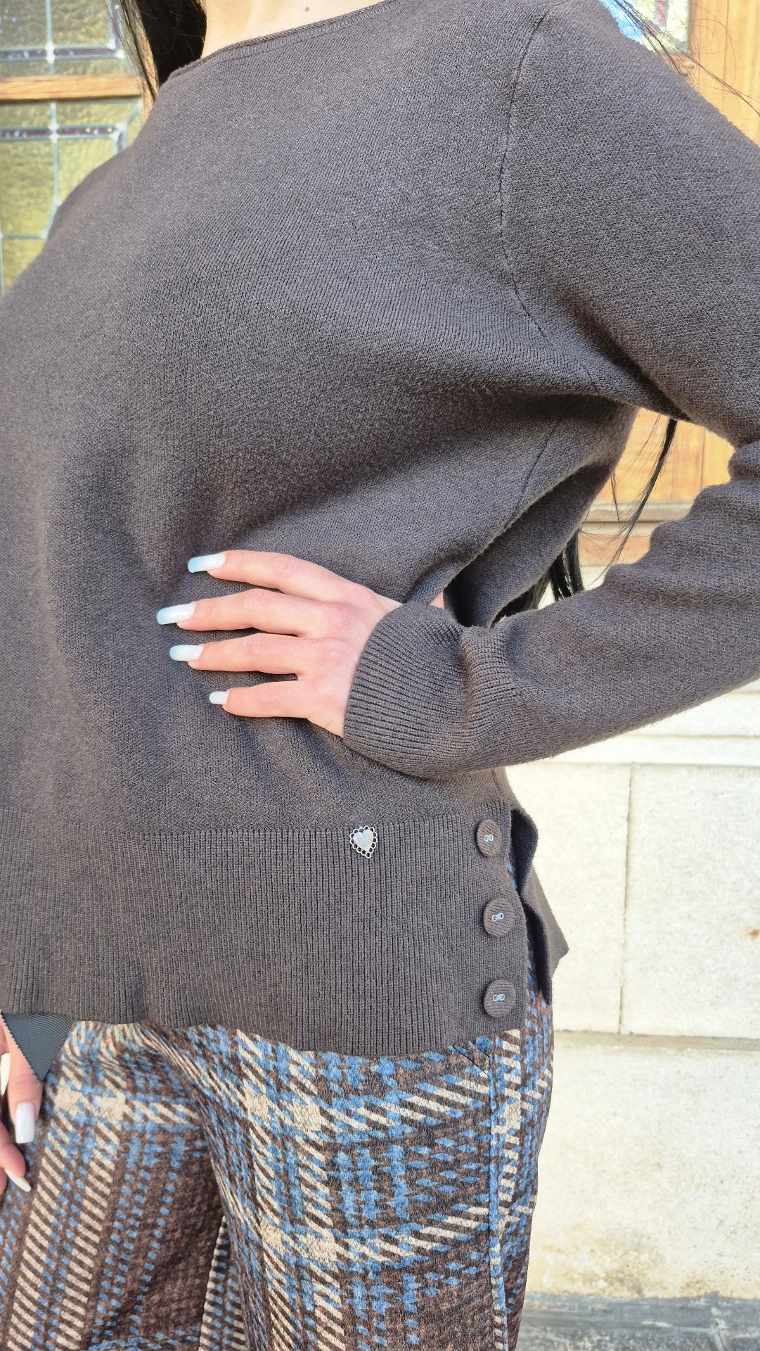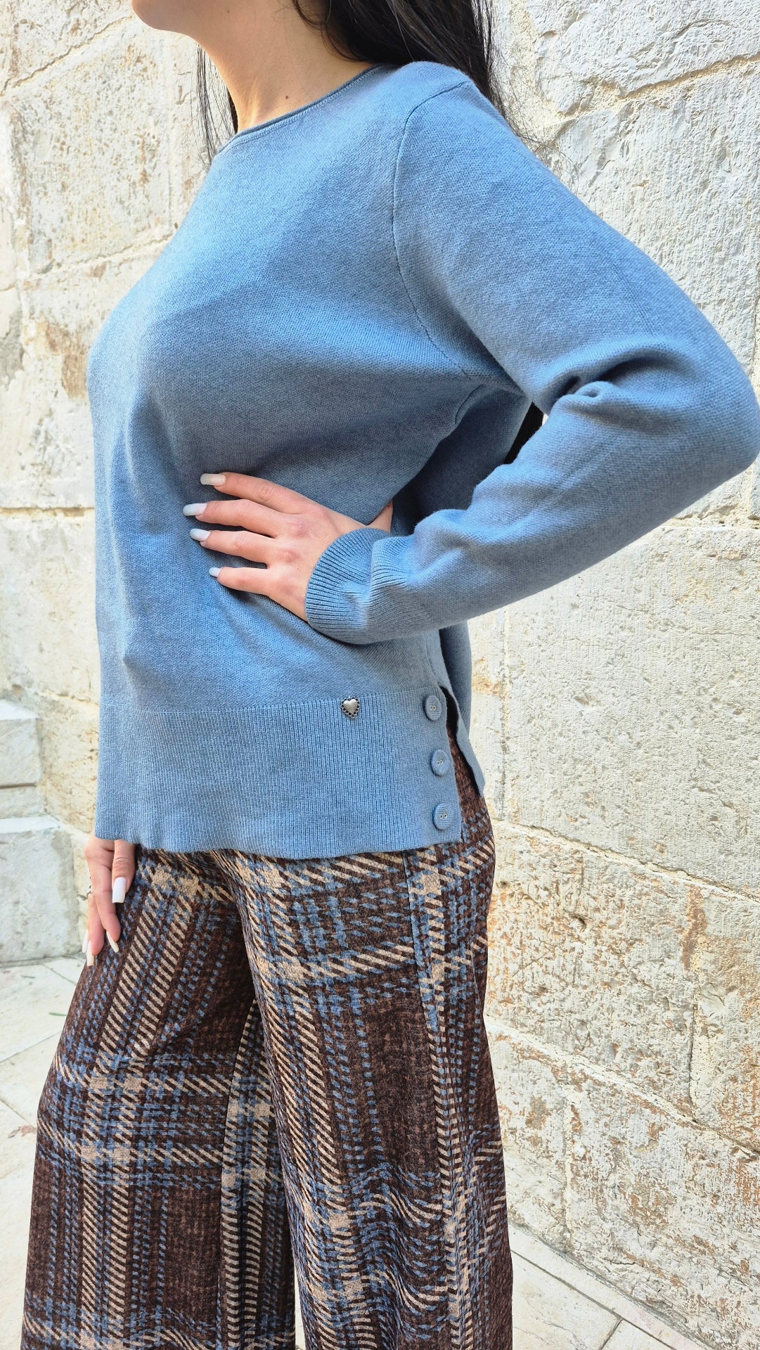 Jersey de mujer liso con aberturas laterales y 3 botones de adorno en cada lado.