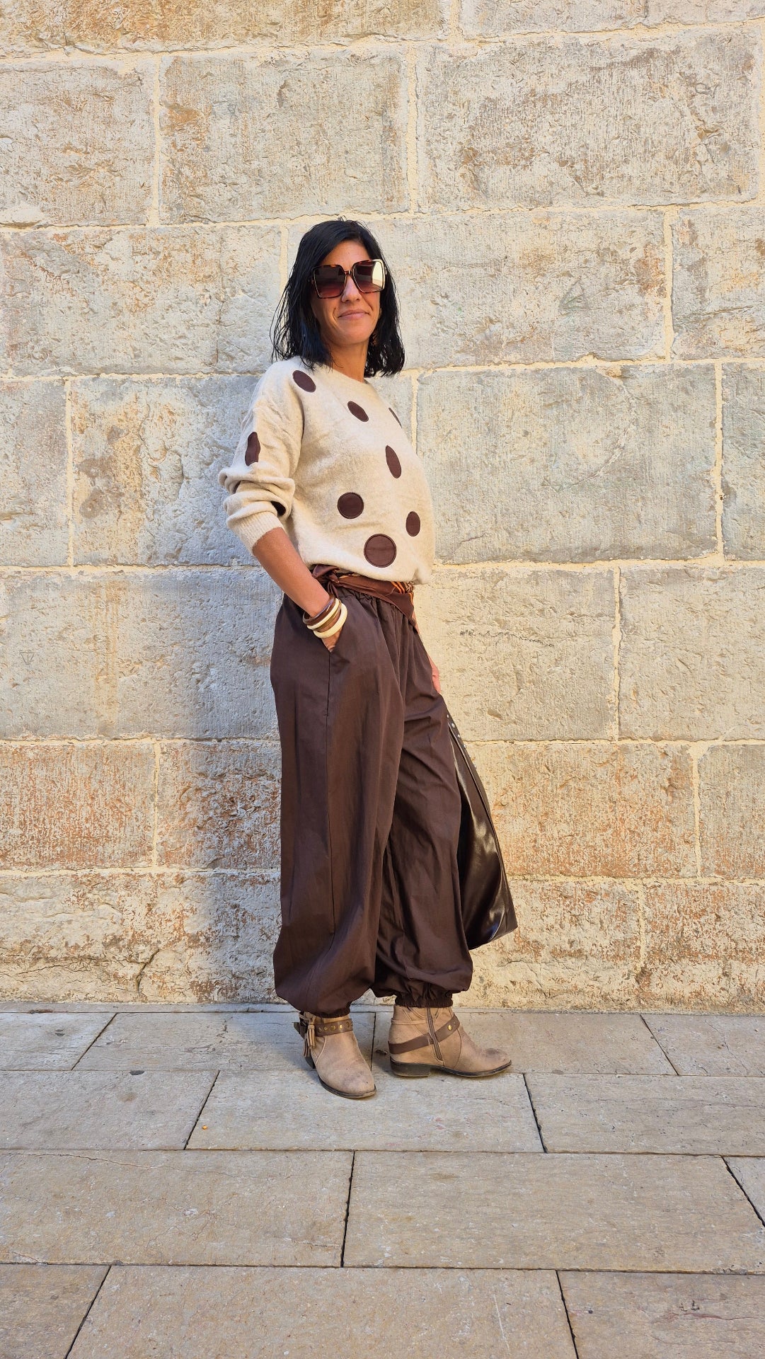 Jersey de mujer con lunares bordados en tela símil a la antelina.