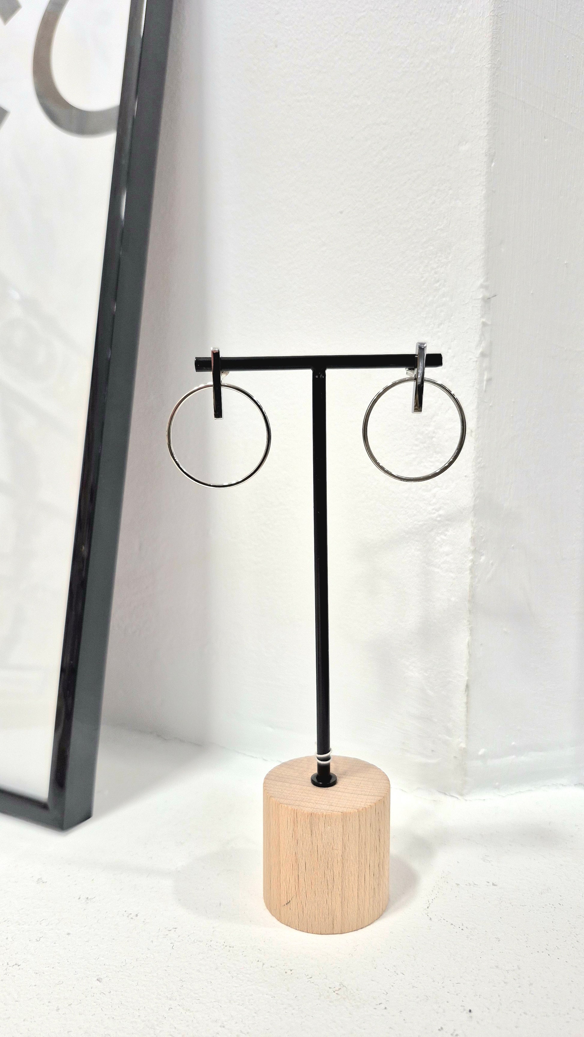 Pendientes de mujer con forma de aro y barra vertical, de diseño minimalista.