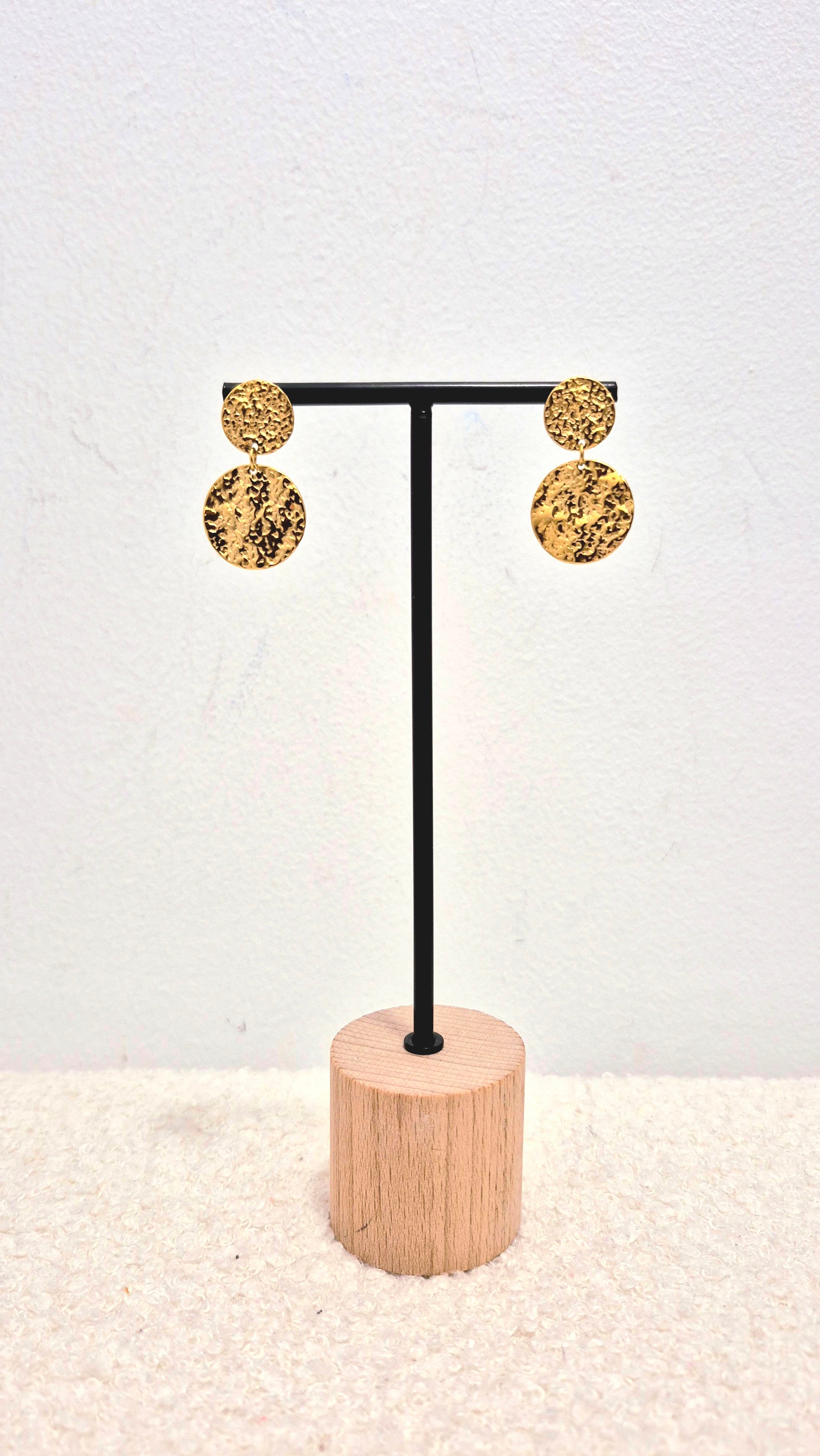 Pendientes de mujer con 2 esferas irregulares y con relieve.