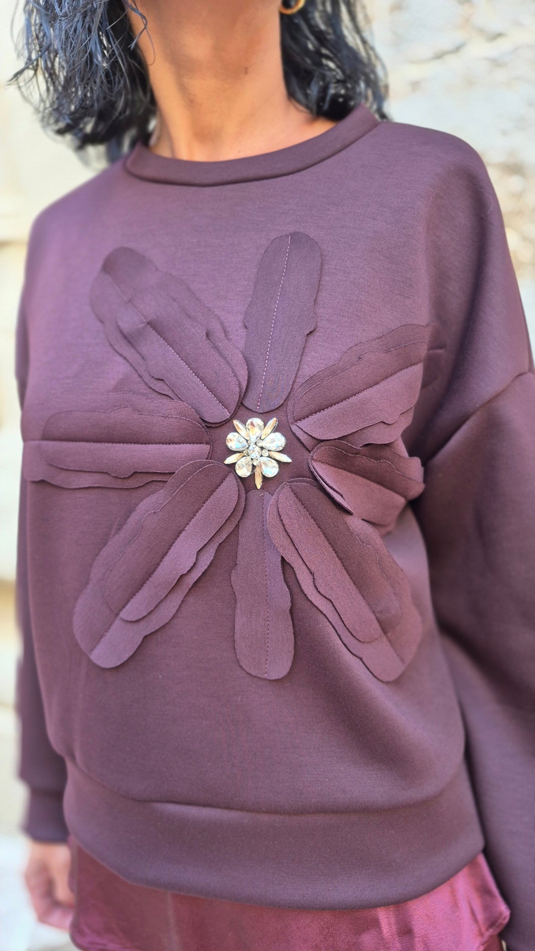 Sudadera de mujer en color burdeos, Con cuello redondo.