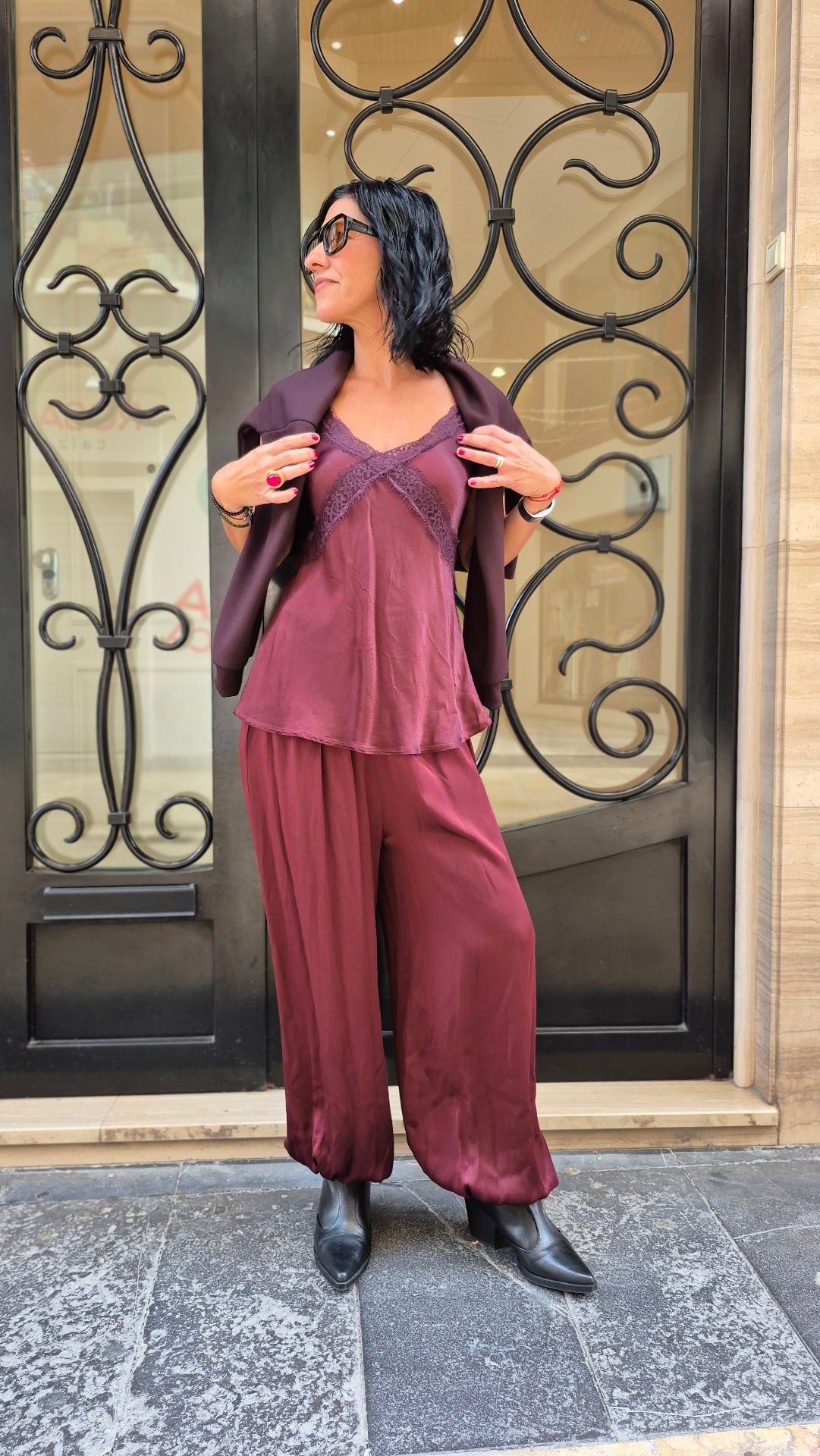 Ideal para combinarlo con nuestro pantalón bombacho satinado.